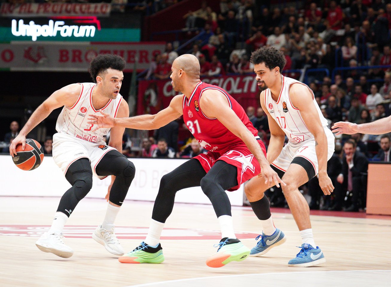 „EA7 Emporio Armani“: Leandro Bolmaro 16, Quinnas Ellisas 15 (3/4 tritaškiai, 6 rez. perd.)Armoni Brooksas 12, Zachas LeDay‘us 11, Leonardo Tote 8.