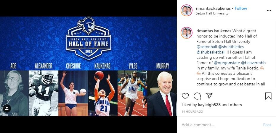 „Kokia didelė garbė būti įtrauktam į „Šlovės muziejų“! Matyt vejuosi kitą taip įvertintą savo šeimos atletę – žmoną Tanją Kostič. Visa tai yra nuostabi staigmena ir didelė motyvacija toliau augti ir tobulėti įveikiant naujus iššūkius. Man labai svarbu, kad mylimas universitetas įvertino mūsų, kaip komandos pasiekimus“, – socialiniame tinkle „Instagram“ rašė visiems prie to prisidėjusiems dėkojęs R.Kaukėnas.