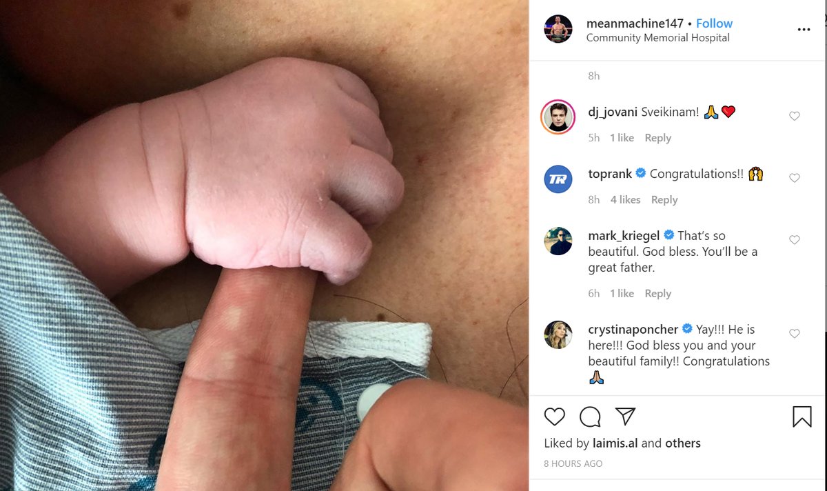 „Svarbiausias mano gyvenimo etapas ką tik prasidėjo. Vitalija, tu esi nuostabi“, – rašė boksininkas, pridėjęs, kad šeima jam reiškia visą pasaulį.