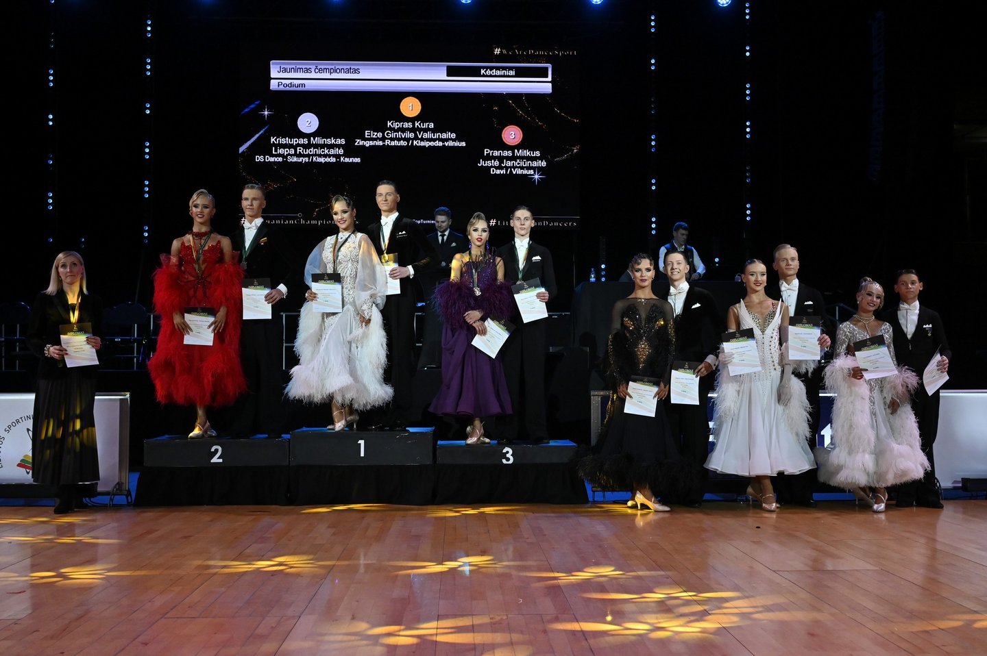 Tuo tarpu Dmytro Zruynovaniy ir Vestinai Remeikaitei iš Kauno klubo „Danza M“ atiteko vicečempionų titulas ir sidabro medaliai, o bronza džiaugėsi taip pat kauniečiai – klubų „Toro“ ir „Kaspinas“ šokėjai Dovydas Li ir Rimantė Krupavičiūtė.