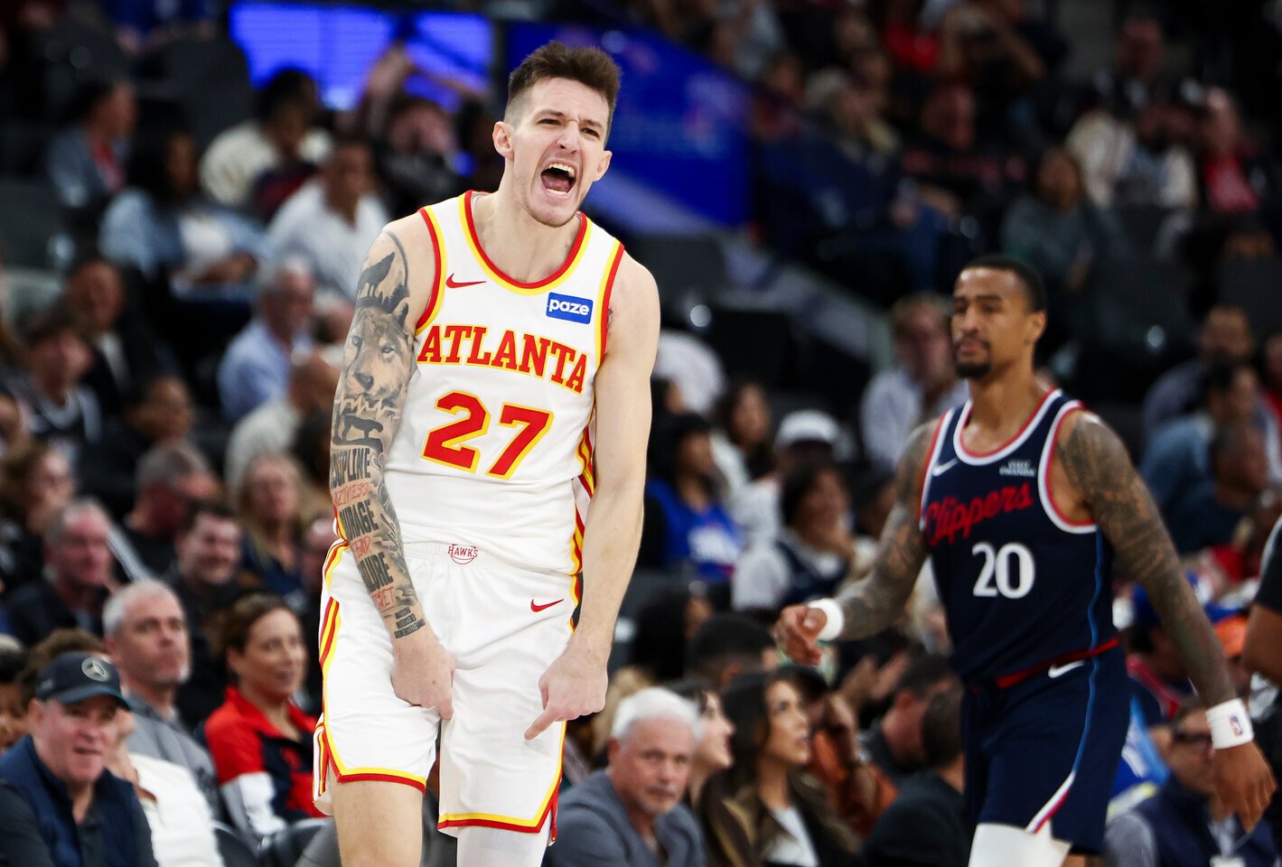 „Clippers“: Jamesas Hardenas 35 (10 atk. kam., 11 rez. perd., 6/14 tritaškių), Ivica Zubacas 13 (12 atk. kam.), Krisas Dunnas ir Derrickas Jonesas po 11, Johnas Collinsas (7 atk. kam., 1/6 tritaškių), Brookas Lopezas ir Kobe Brownas po 9.