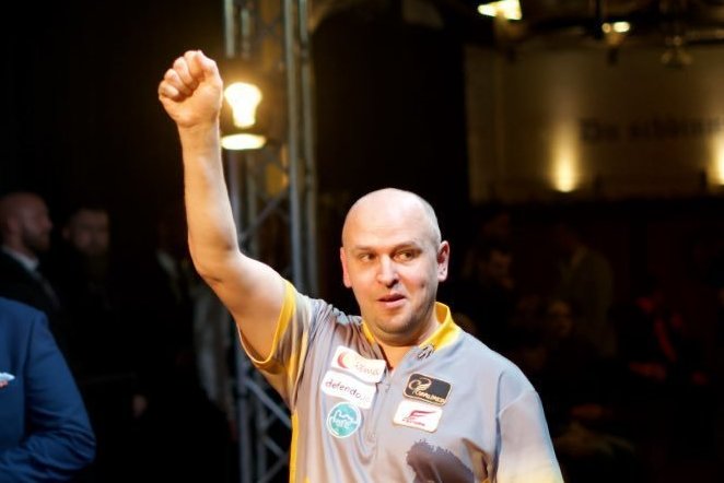 Pirmajame rate lietuvis 1:6 neprilygo anglui Eddie Lovely. Smiginio veteranas šiuo metu nėra reitinguotas, bet demonstravo įspūdingą formą, trimis strėlytėmis rinkdamas vidutiniškai po 103,8 tšk. D.Labanausko vidurkis siekė 95,3 tšk.