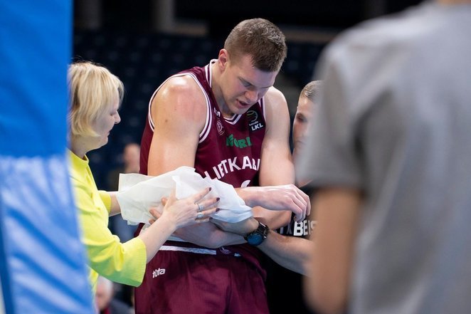 Sekmadienio Lietuvos krepšinio lygos („Betsafe–LKL“) rungtynių su „Šiauliais“ ketvirtajame kėlinyje puolėjas nesėkmingai bandė blokuoti varžovo metimą ir patyrė peties traumą.