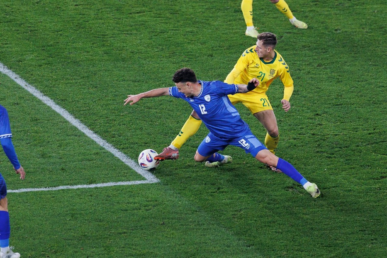 Po kampinio kyl apavojinga situacija prie Izraelio vartų, bet mūsų rinktinės atstovas nesugeba pasiekti kamuolio.