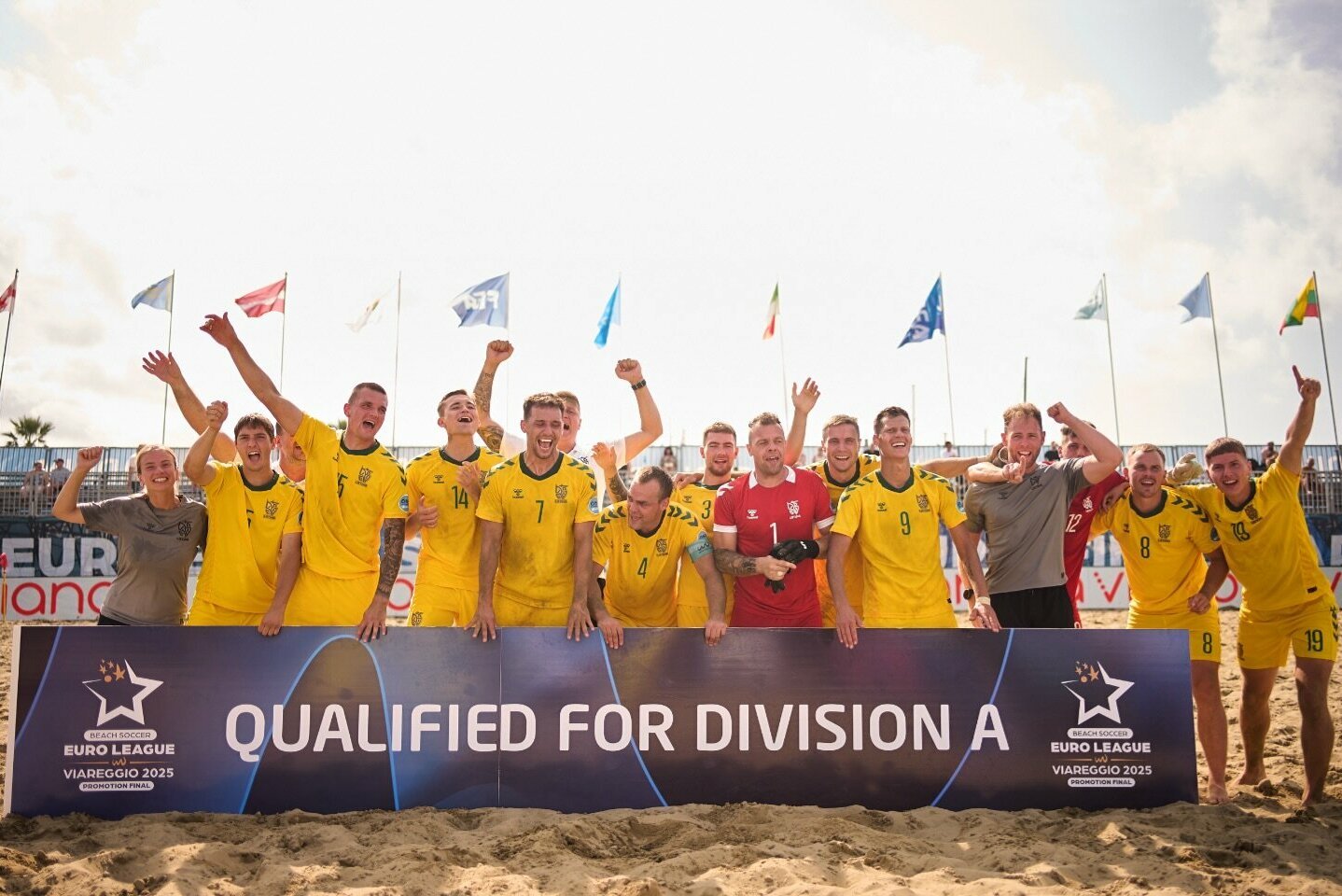 Italijoje vykstančiame Europos paplūdimio futbolo čempionato B diviziono superfinalo turnyro pusfinalyje Aivaro Meškinio auklėtiniai po baudinių serijos (pagrindinis laikas 0:0) nugalėjo Kazachstano futbolininkus ir garantavo sau patekimą į varžybų finalą.