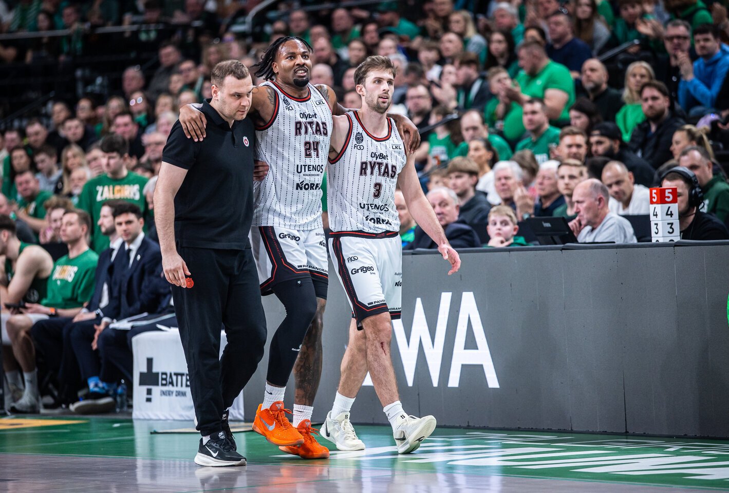 „Žalgiris“: Mosesas Wrightas 16 (6/6 dvitaškių, 4 atk. kam.), Sylvainas Francisco (3/7 tritaškių, 6 rez. perd.), Deividas Sirvydis (3/5 tritaškių) ir Dustinas Sleva (5 atk. kam.) po 11, Laurynas Birutis (7 atk. kam.) ir Edgaras Ulanovas po 10.