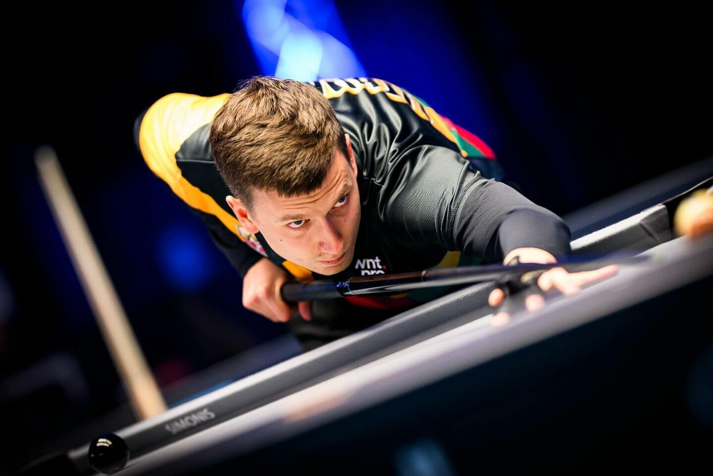 Lietuvis 4:5 pralaimėjo amerikiečiui Shane‘ui van Boeningui, 5:3 nugalėjo vietnamietį Bui Truongą Aną, 3:5 nusileido filipiniečiui Johannui Chua, 2:5 – Aloyssiui Yappui iš Singapūro, 0:5 – ispanui Francisco Sanchezui Ruizui, 4:5 – albanui Kledio Kaciui, 2:5 – vokiečiui Moritzui Neuhausenui, 5:3 įveikė vietnamietį Duongą Quocą Hoangą, 5:2 – Robbie Capito iš Honkongo, 5:3 – britą Jaysoną Shaw, 3:5 pralaimėjo amerikiečiui Tyleriui Styeriui, 3:5 – bosniui Sanjinui Pehlivanovičiui, 5:2 nugalėjo filipinietį AJ Manasą, 5:4 – albaną Eklentą Kacį ir 4:5 pralaimėjo Indonezijos atstovui Edwardui Koyongianui.