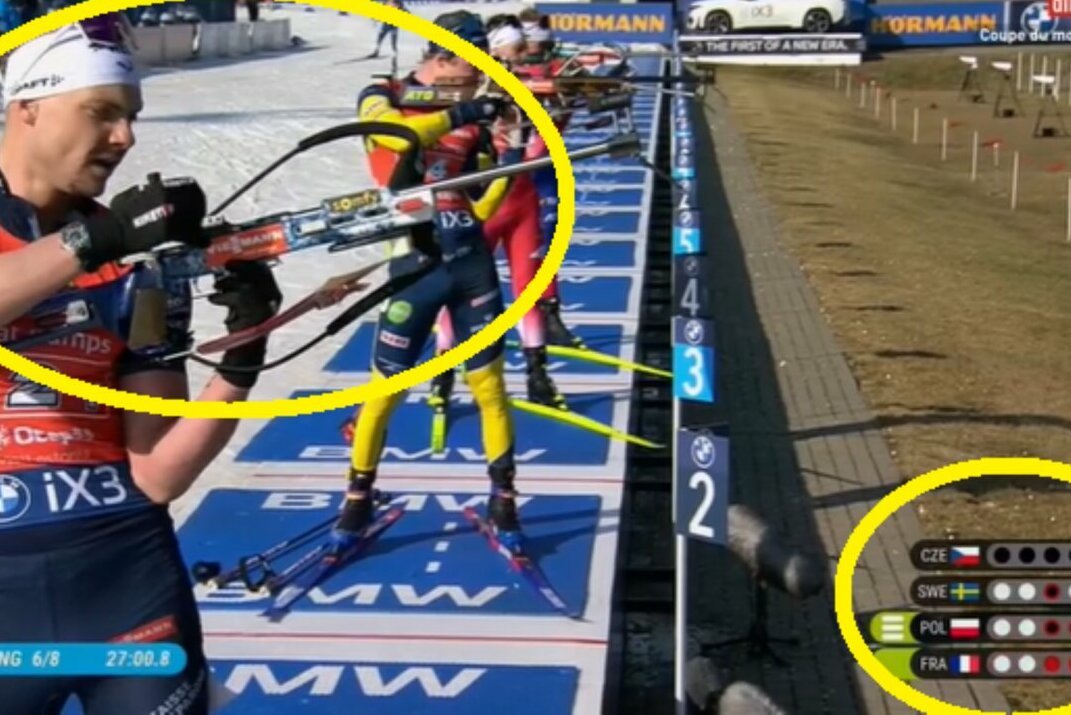Pajėgi prancūzų pora – Emilienas Jacquelinas ir Camille Bened užsidirbo diskvalifikaciją. Teigiama, kad E. Jacquelinas apsiskaičiavo, per klaidą panaudojo 4 papildomus šovinius, kai jų limitas vienoje šaudykloje yra 3.