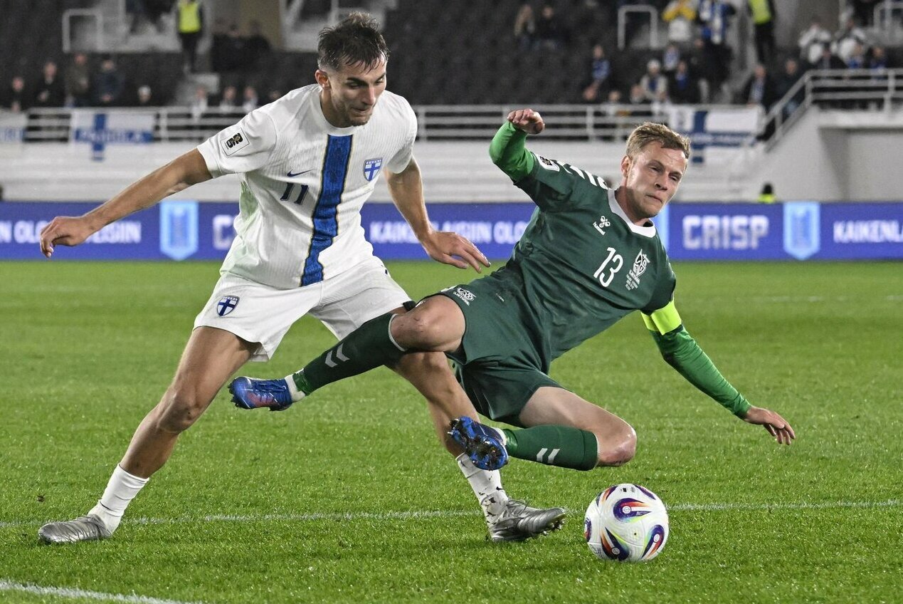 Išvykoje žaidę lietuviai neišlaikė pranašumo ir 1:2 nusileido Suomijos futbolininkams.