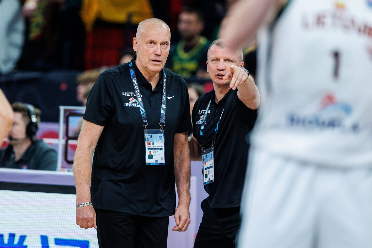 – Čia daug buvo dvejonių, kodėl vežamės tris aukštaūgius – centrus, praktiškai šiandien parodžiau, kodėl. Jonas sužaidė savo reikalingas minutes, įdeda komandai daug energijos, taškų, kovingumo, o po to keičiasi du centrai, jie aktyvūs, agresyvūs, tai pasiteisino, pažiūrėsime, kaip bus prieš vokiečius.