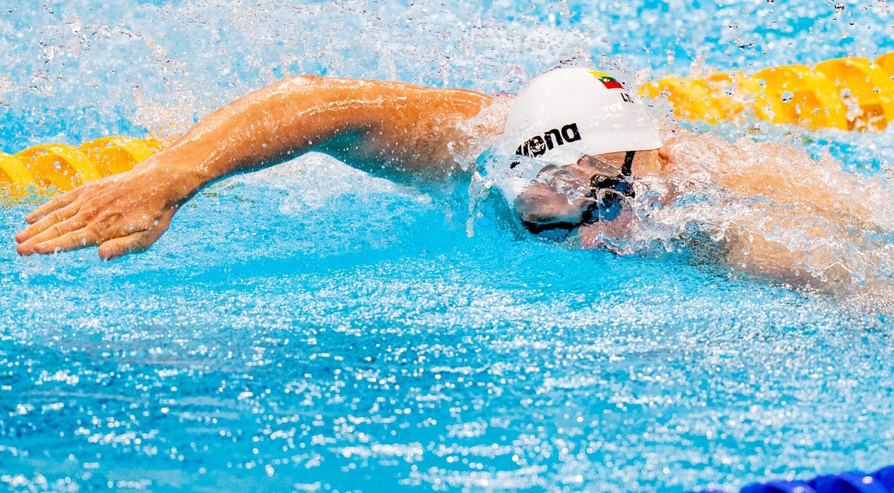 Į baseiną kiek vėliau šoko ir Erikas Grigaitis, kuris važėsi 50 m plaukimo nugara atrankoje. Lietuvos distanciją įveikė per 26,34 sek. ir savo plaukime buvo antras.