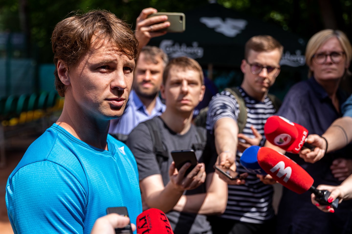 „Politikai jums atsakys“, – paklaustas, ar apskritai palaiko draudimą rusams ir baltarusiams žaisti Vimbldone, atsakė R. Berankis