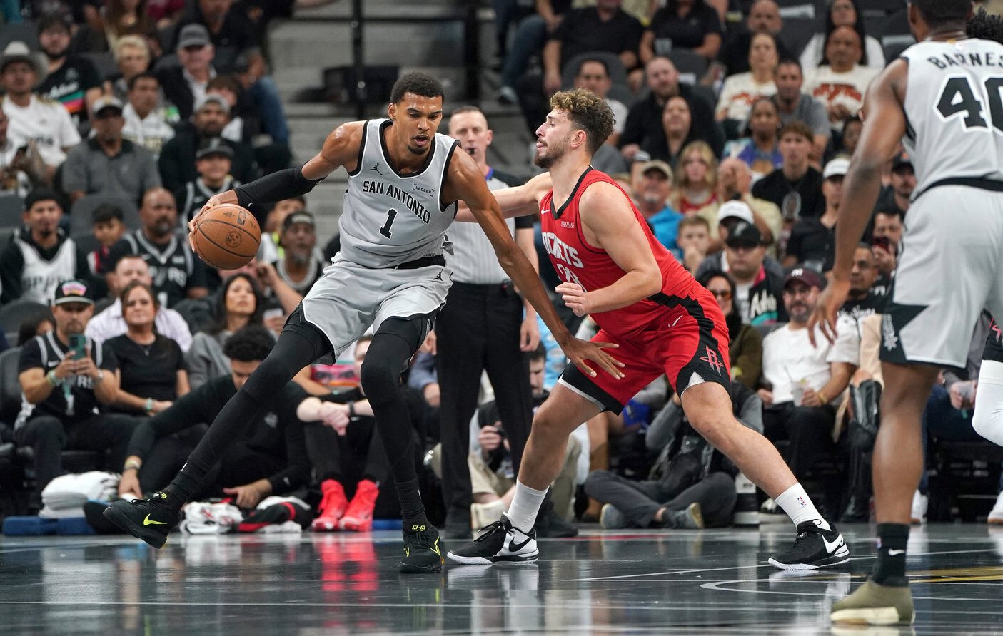 „Spurs“ 24 taškus pelnė Harrisonas Barnesas, po 22 – Julianas Champagnie (7 atk. kam.) ir Victoras Wembanyama (8 atk. kam.), 15 – Devinas Vassellis.