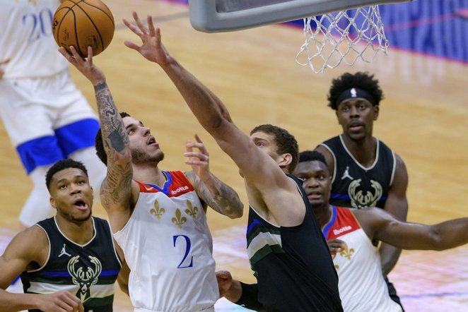 „Pelicans“: Brandonas Ingramas 28, Lonzo Ballas 27 (8 rez. perd.), Ericas Bledsoe 25 , Zionas Williamsonas 21 (9 atk. kam., 7 rez. perd.), Joshas Hartas 15.