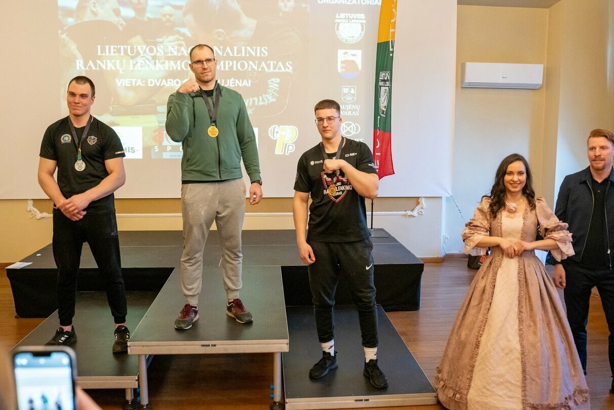 Didžiausia staigmena pateikė vos 85kg svorio kategorijos nugalėtojas iš Vilniaus Arsenij Rybakov, kuris tik finale dešine ranka po atkaklios kovos nusileido kur kas sunkesniam +110kg kategorijos nugalėtojui Ernestui Rimšai iš Kuršėnų, trečioje vietoje liko Žygimantas Berzinis, pakartojęs praėjusių metų rezultatą.