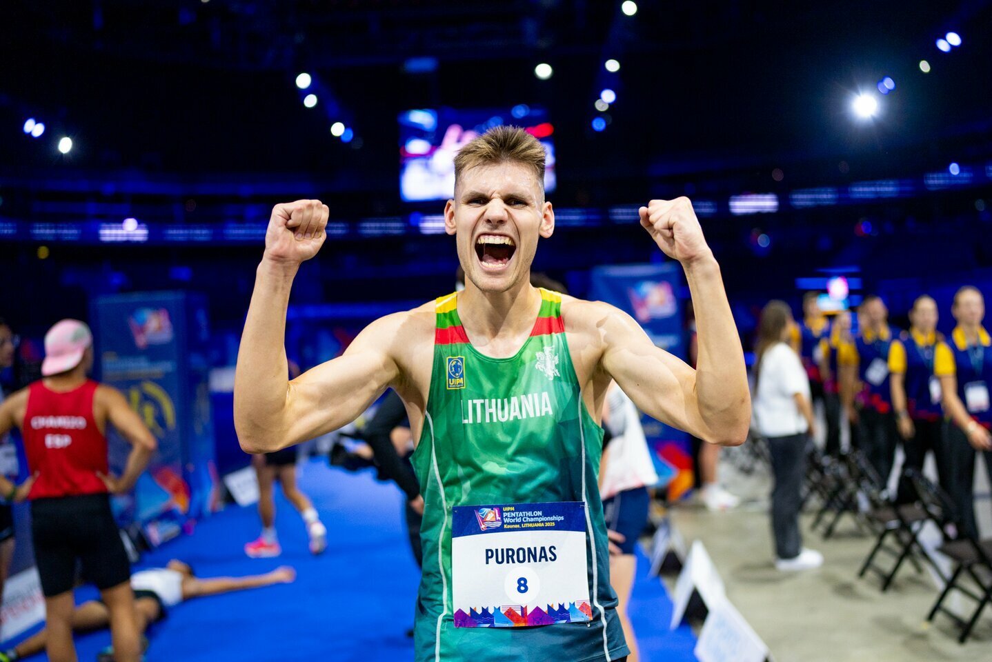 Titas Puronas (A grupė). Tiesioginėse fechtavimo eliminacijose Titas pasirodė užtikrintai – pasiekė eliminacijų pusfinalį ir fechtavimo įskaitoje buvo 3-ias (238 tšk.). Kliūčių ruože fiksuotas 0:35,24 laikas ir 12-as rezultatas grupėje. Plaukimas šį kartą nebuvo stipriausia grandis (2:18,72), todėl į bėgimo–šaudymo startą Titas stojo iš 8 pozicijos. Kadangi į finalą patenka 9 sportininkai iš grupės, reikėjo išlaikyti vietą pirmajame devintuke. Intrigos netrūko – dvi šaudymo serijos viršijo 20 sek., tačiau stabilus bėgimas leido finišuoti 7-am ir užsitikrinti bilietą į pasaulio čempionato finalą.