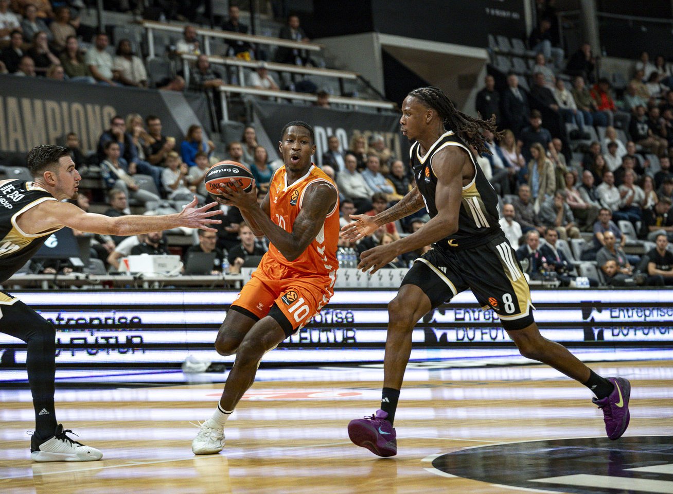 Eurolygos pirmojo turo rungtynėse Vilerbano ASVEL (0/1) ekipa namuose 77:80 (18:19, 17:15, 26:26, 16:20) nusileido Valensijos „Valencia“ (1/0) krepšininkams.