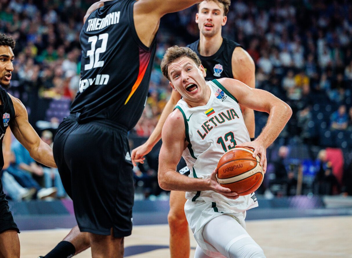 Lietuva (2/1) Tamperėje nusileido Vokietijos rinktinei (3/0) –88:107 (20:32, 27:23, 25:29, 16:24).