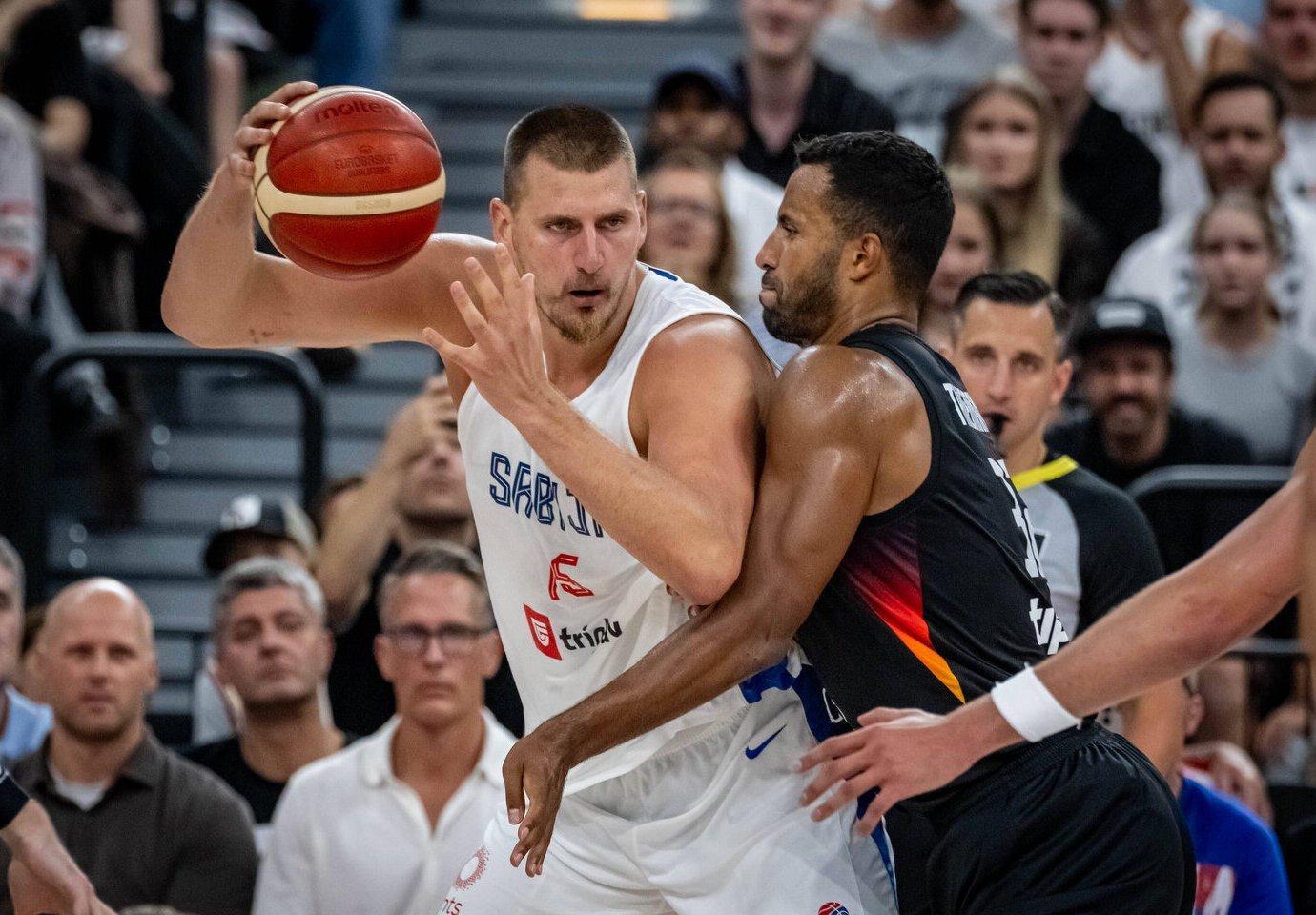 Prieš lemiamą ketvirtį Serbija užtikrintai pirmavo (70:55), bet Franzo Wagnerio užkurti vokiečiai 4 minučių atkarpą laimėjo 16:3 ir priartėjo iki vieno metimo – 71:73.