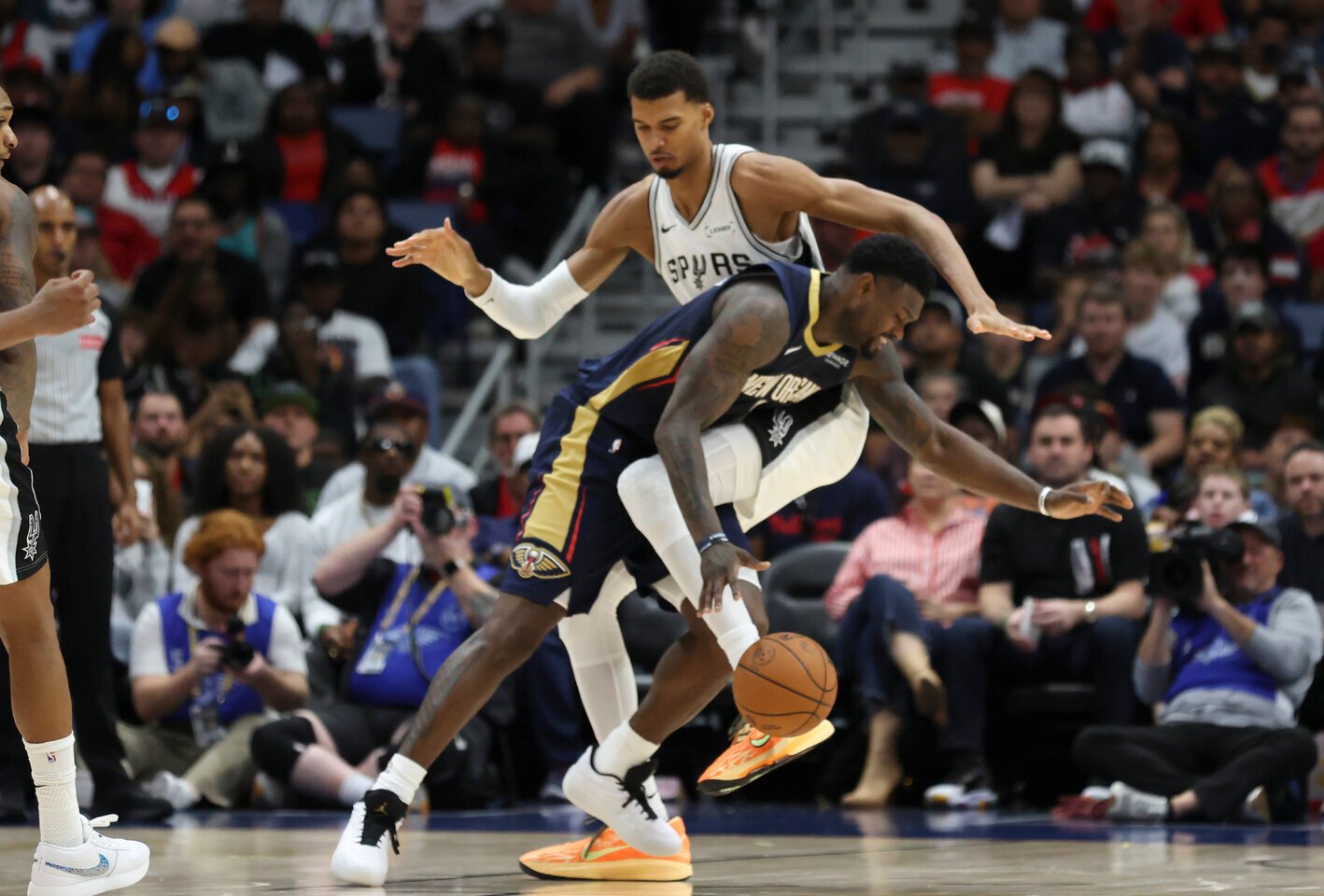 Po „Spurs“ klaidos rengtą ilgą ataką tiksliai užbaigė Zionas Williamsonas, kitoje aikštės pusėje tritaškiu rezultatą persvėrė Stephonas Castle’as (106:107). Pražangą sugėręs Z.Williamsonas pataikė tik vieną baudos metimą, o su sirena prašovęs V.Wembanyama nepadėjo išvengti pratęsimo.