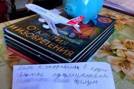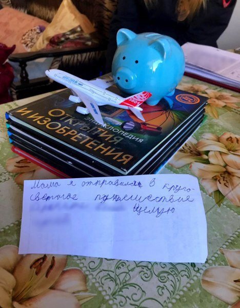 Tiksli berniuko citata paliktame raštelyje skamba taip: „Mama aš išvykau į kelionę aplink pasaulį bučiuoju“.