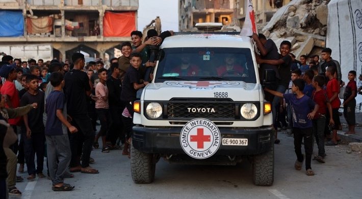 Prasidedant paliauboms, kurios įsigaliojo spalio 10 d., „Hamas“ Gazos Ruože laikė 20 gyvų ir 28 negyvus įkaitus. Nuo to laiko smogikai paleido visus gyvus belaisvius ir atidavė 25 mirusių įkaitų palaikus. Mainais už tai Izraelis išlaisvino beveik 2 tūkst. jo žinioje buvusių palestiniečių kalinių ir grąžino šimtų negyvų palestiniečių kūnus.