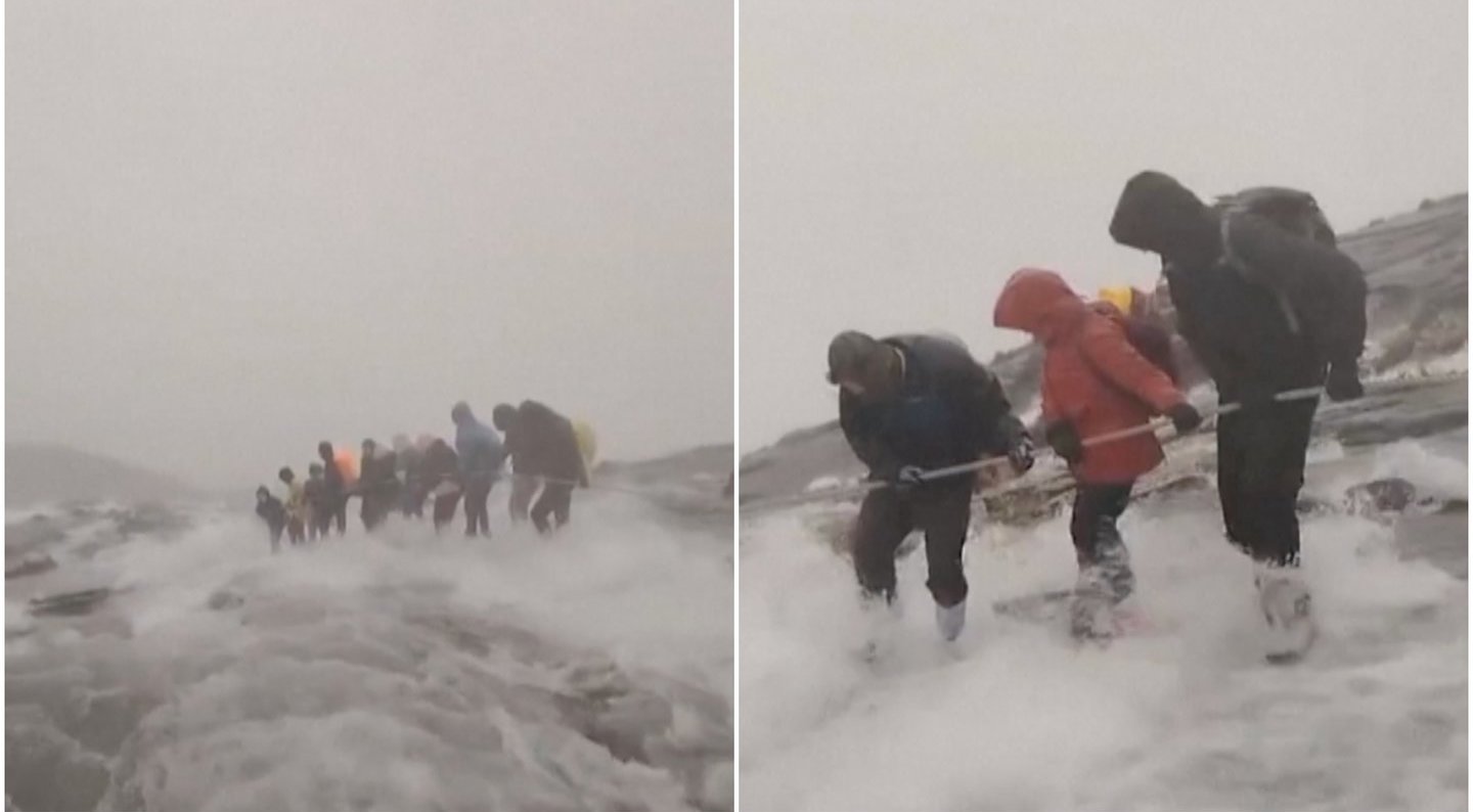 Liepos 10-osios rytą socialiniuose tinkluose pasirodė šiurpą keliantis vaizdo įrašas, kuriame matyti, kaip grupė alpinistų buvo priversti rizikuoti savo gyvybėmis, leisdamiesi potvynio vandens gausiai plaunamu nusileidimo taku garsiajajame Kinabalu kalne, Malaizijoje.