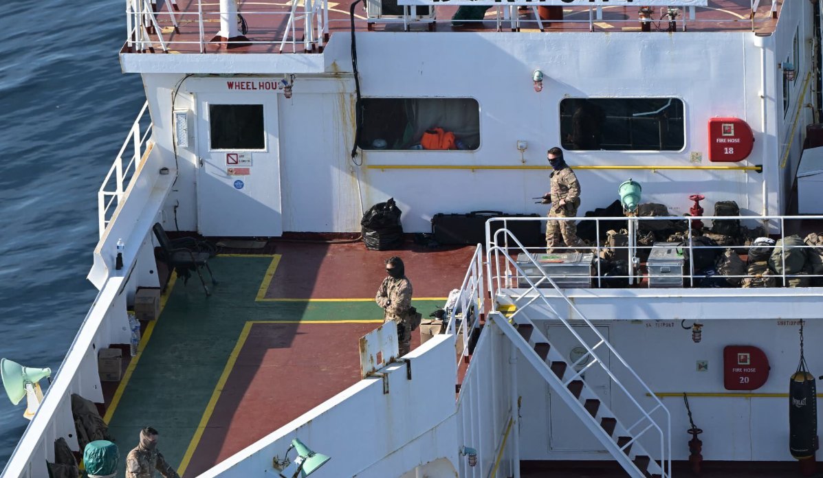 Įgula nepateikė laivo registracijos šalies įrodymų ir atsisakė vykdyti nurodymus, agentūrai dpa pranešė prokuratūra. Danijos televizijos kanalo TV 2 transliuotame vaizdo įraše matyti laive esantys kariai.