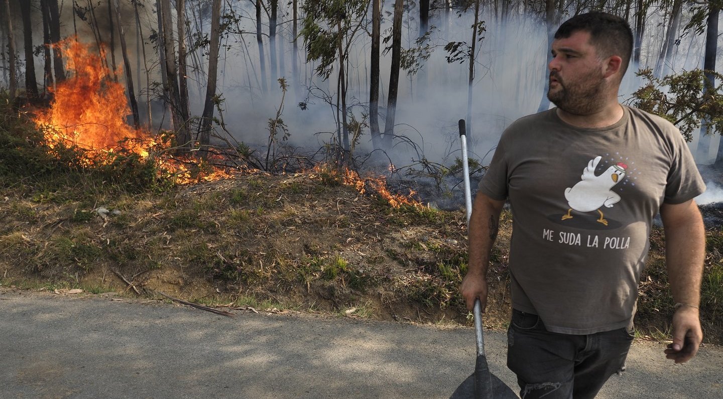 Šiaurės vakariniame Galisijos regione su sostine Santjago de Kompostela keli gaisro židiniai susijungė į vieną didelį gaisrą. Dėl to teko uždaryti greitkelius ir geležinkelio ruožus. Dėl orų sąlygų liepsnos greitai plinta ir ugniagesiams greitai tampa nesuvaldomos.