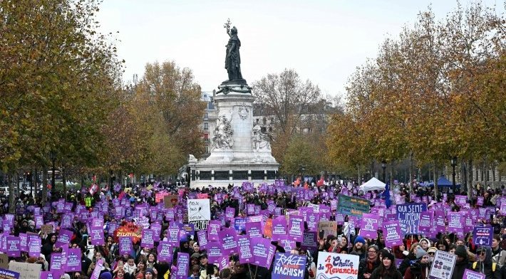 Paryžiuje minios demonstrantų – pasak organizatorių, apie 50 tūkst., tačiau policijos – apie 17 tūkst., – mojavo plakatais, skandavo, šoko ir dainavo protestuose, kuriuos surengė feministinė iniciatyva „Greve feministe“,.vienijanti maždaug 60 organizacijų.