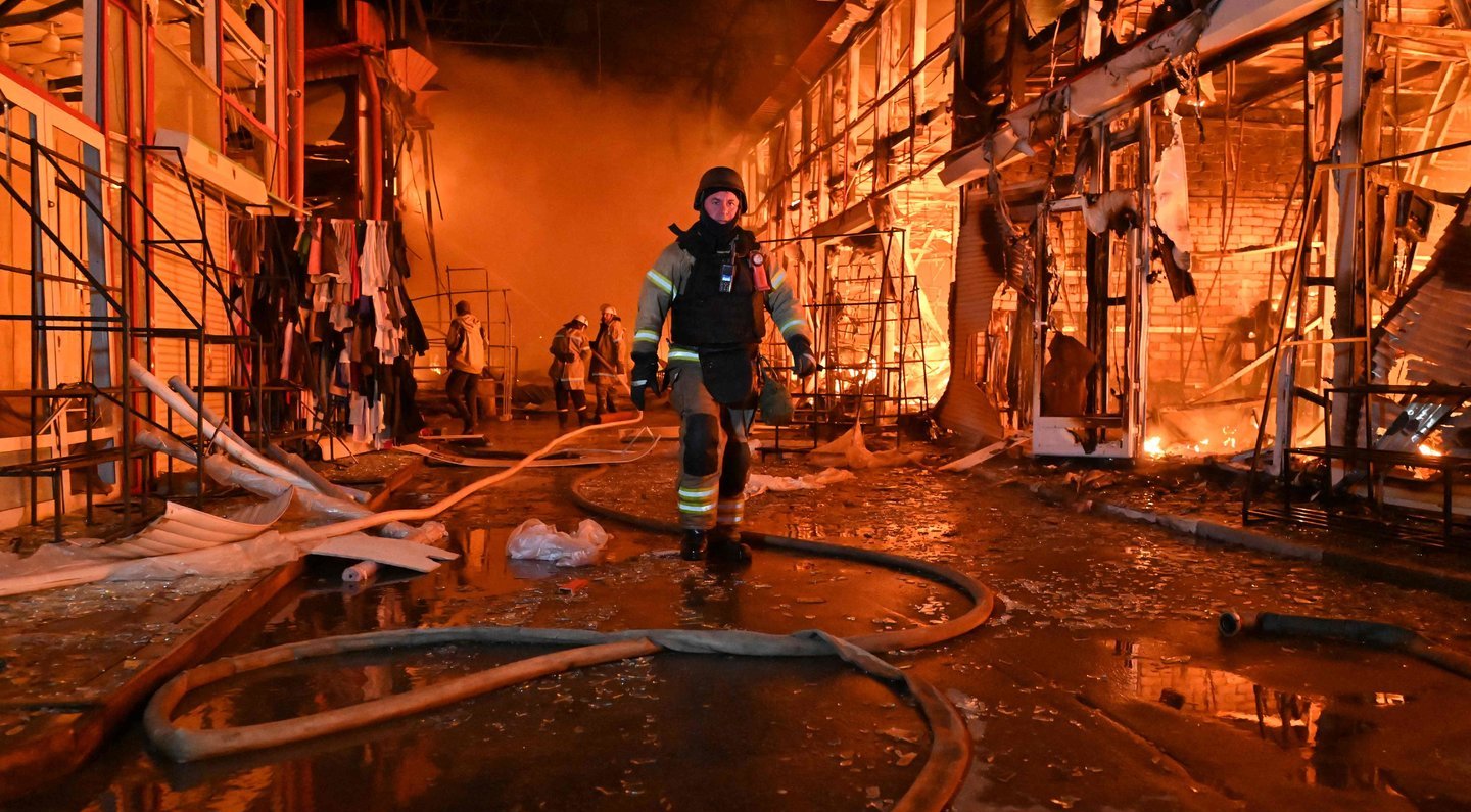 Kyjivo meras Vitalijus Kličko per „Telegram“ pranešė, kad pietiniame Holosijivskio rajone kilo gaisras. Jis pridūrė, kad raketų nuolaužos taip pat nukrito kituose dviejuose rajonuose ir padegė mažiausiai vieną automobilį.