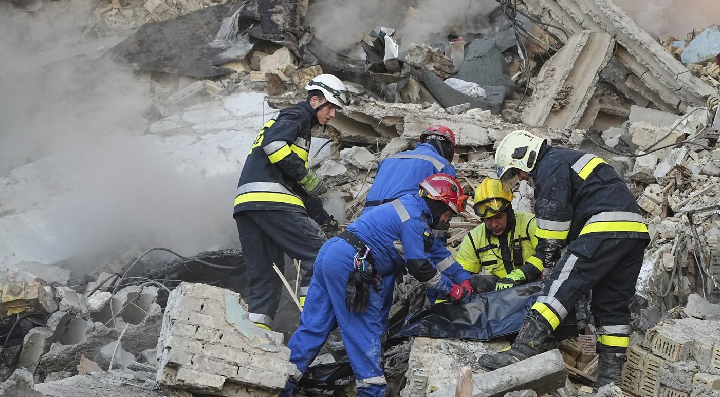 Jo duomenimis, 11 Ukrainos regionų dirba 1 tūkst. 500 gelbėtojų. Kyjive paieškų ir gelbėjimo darbai tęsiasi aštuoniose vietose. Sostinėje žuvo keturi žmonės, tarp jų 12-metė, kurią prispaudė betono plokštė. Kardiologijos centre per ataką žuvo medicinos sesuo ir pacientas. Dar vienas asmuo negyvas rastas kito smūgio vietoje.