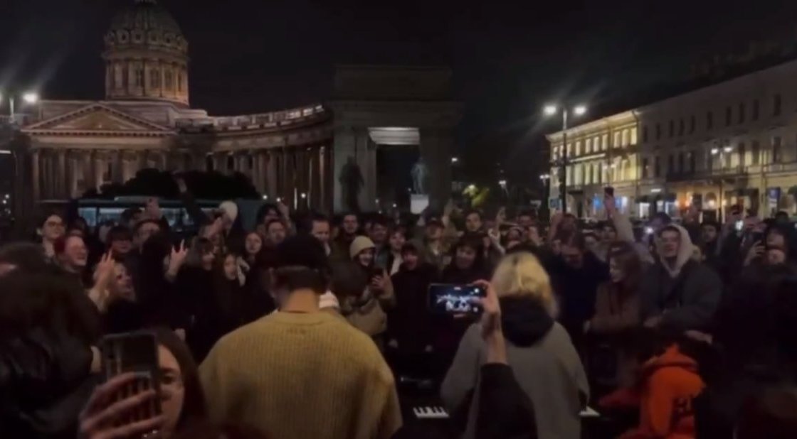 Minia prisijungė prie mieste grojančių gatvės muzikantų ir kartu dainavo dainą „Kooperatyvinis gulbių ežeras“, kuri buvo uždrausta 2025 m. gegužę, kai Sankt Peterburgo teismas paskelbė šį kūrinį „ekstremistiniu“.