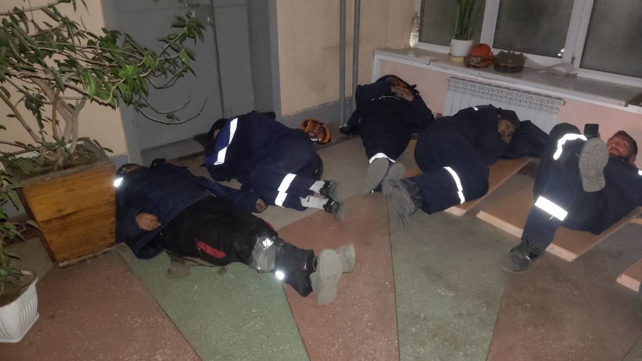 Suvirintojų, elektrikų ir montuotojų komanda, reikalaudama atlyginimų, buvo priversta imtis kraštutinių priemonių: darbuotojai miega elektrinėje ant grindų, o kai kurie vyrai net lipa ant pastato stogo ir grasina nušokti.