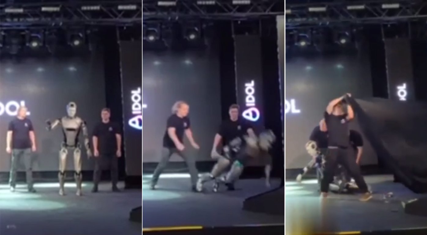 Robotas, pavadintas „AIdol“, buvo pristatytas kūrėjų kaip pažangus antropomorfinės robotikos pavyzdys, pagamintas „daugiausia iš rusiškų komponentų“. Kai du darbuotojai lydėjo robotą ant scenos skambant filmo „Rocky“ garso takeliui, jis prarado pusiausvyrą ir nukrito, palikdamas ant scenos keletą dalių.