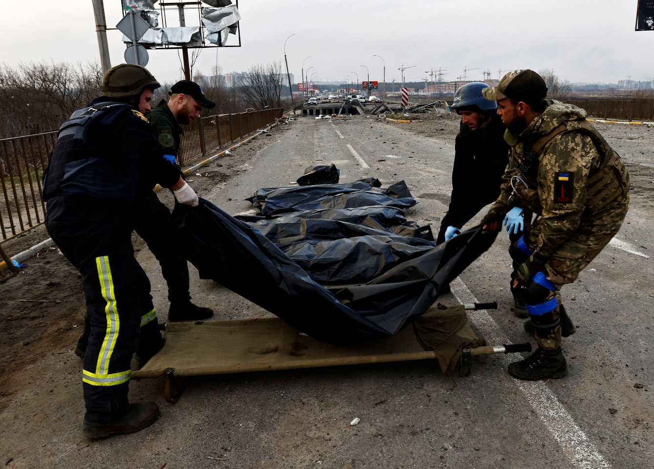 Naujienų agentūros AFP žurnalistai pranešė vienoje Bučos gatvėje šeštadienį matę mažiausiai 20 kūnų. Visi žmonės vilkėjo civilius rūbus.