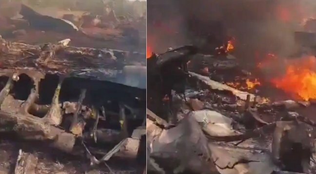 Socialinėse medijose buvo paskelbtas vaizdo įrašas, kuriame matyti didelio balto lėktuvo nuolaužos.