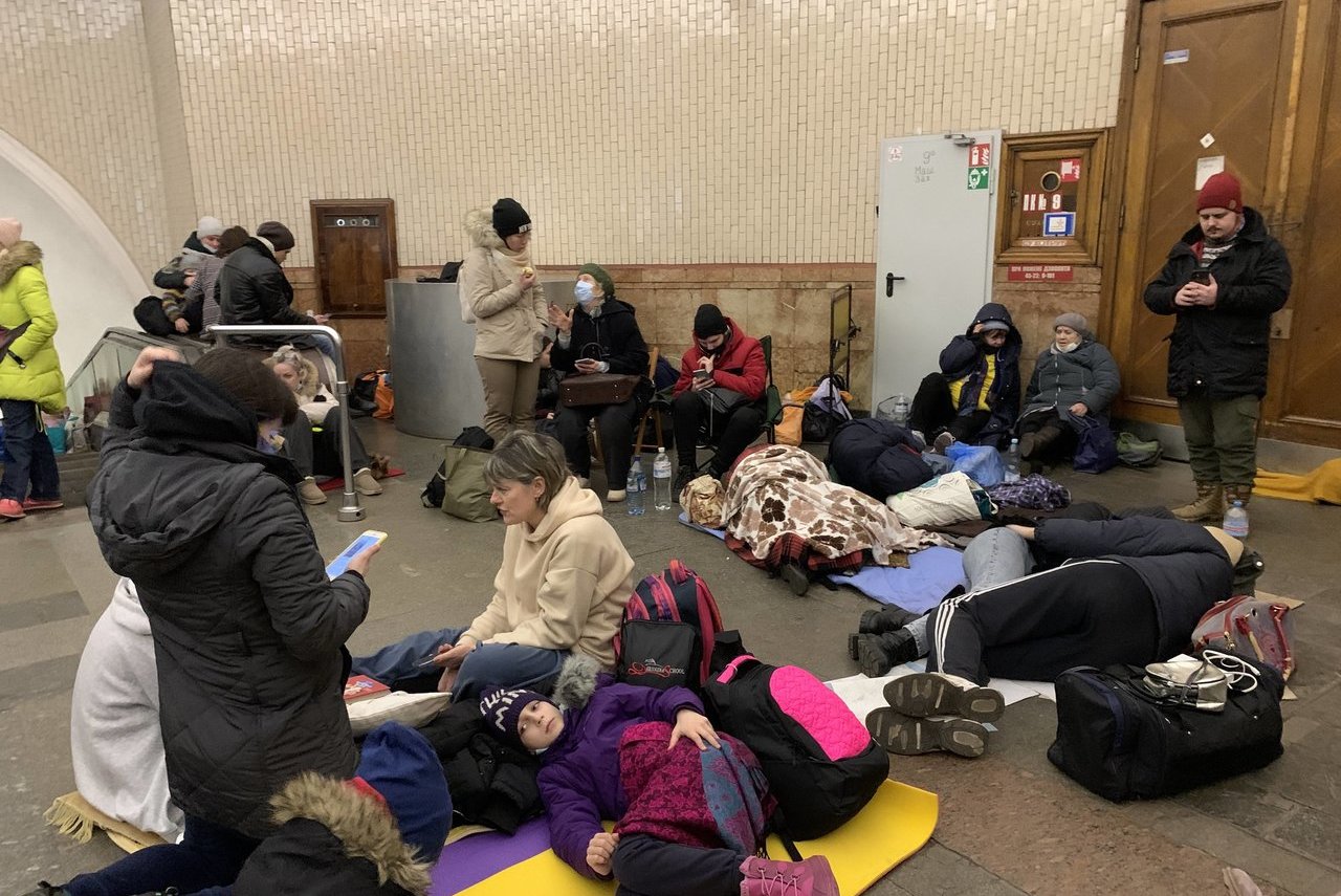 O virš jų, kažkur grėsminguose toliuose, švilpė minosvaidžiai arba „Grad“ raketos, bombarduojančios Ukrainos sostinę. Visi praeiviai bėgte pasileido už pastato kampo ir žemyn tamsiais laiptais į betoninį rūsį. Ten jų jau laukė grupė pervargusių žmonių, kurie trečiąją Rusijos invazijos į savo šalį dieną buvo atsidūrę neįtikėtinai arti progos išvykti iš Kijevo.