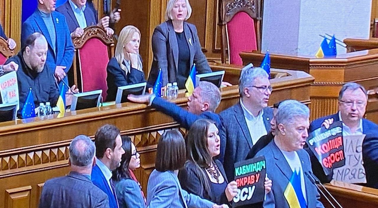Frakcijos deputatai užblokavo tribūną ir šaukė „Vyriausybę lauk!“. Po to Ukrainos Aukščiausiosios Rados pirmininkas Ruslanas Stefančukas pasakė, kad parlamentas negali tęsti darbo, ir paskelbė pertrauką. Jis pakvietė frakcijų ir grupių lyderius susirinkti pas jį į pasitarimą.