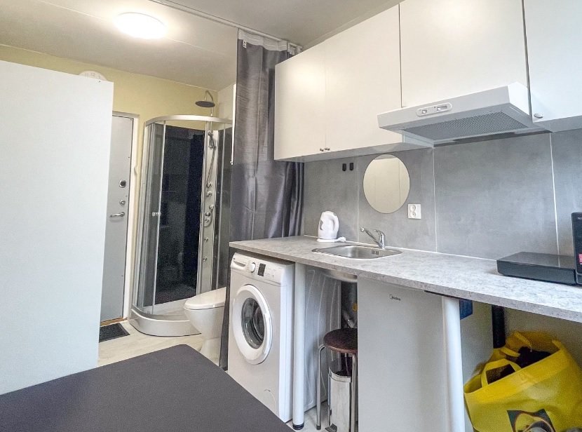 Sprendžiant iš publikuojamų nuotraukų, butukas yra labai mažas, bet jame telpa viskas – tualetas, dušas, virtuvė, miegamasis ir svetainė.