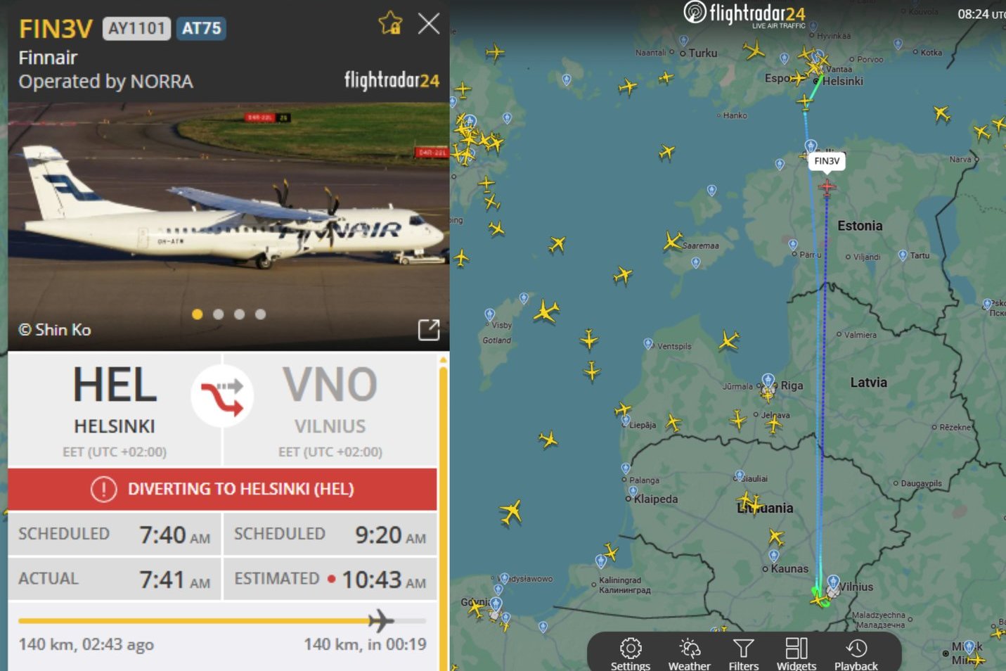 Kaip rodo Flightradar24.com duomenys, pirmadienio rytą iš Helsinkio 07:41 val. į Lietuvą išskrido „Finnair“ priklausantis lėktuvas.