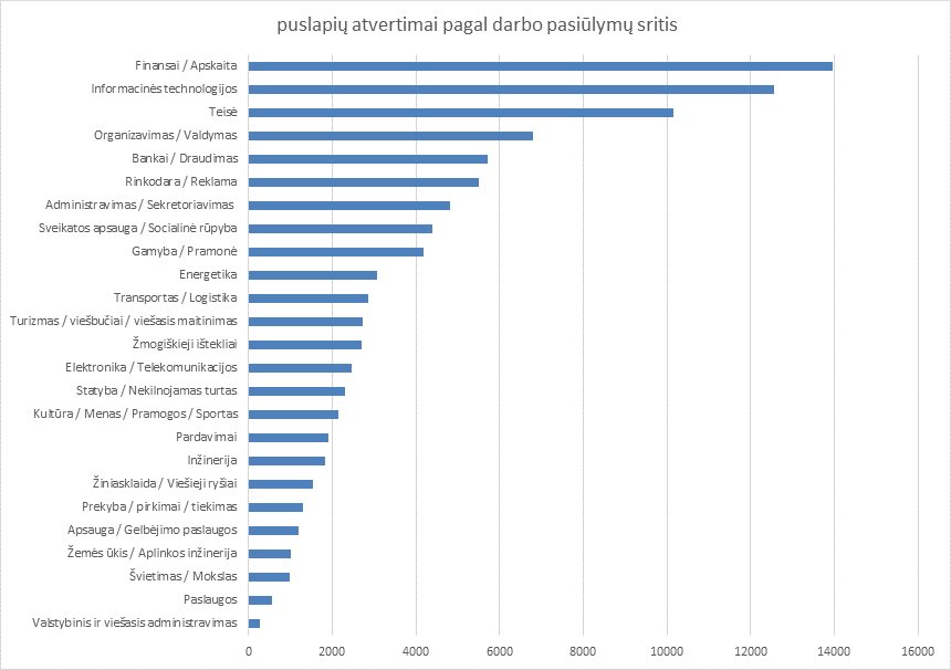 Šiuo metu jų darbo paieškos portale žmonės dažniausiai domisi galimybėmis įsidarbinti finansų, teisės, informacinių technologijų srityse.