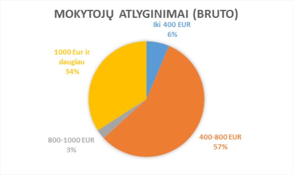 „Kas dešimtas šalies dirbantysis dirba švietimo. Jau dabar statistinis mokytojo atlyginimas yra didesnis už vidutinį šalyje ir valstybės sektoriuje: Lietuvos statistikos departamento duomenimis, 2016 m. IV ketvirtį mokytojai vidutiniškai uždirbo 892,5 Eur, neatskaičius mokesčių, kiti valstybės sektoriaus darbuotojai 849,7 Eur, o šalies ūkyje – 822,8 Eur, neatskaičius mokesčių“, – rašoma pranešime.