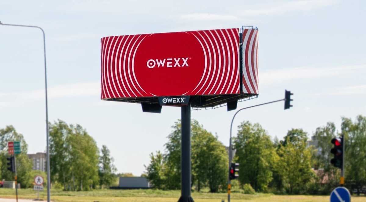 OWEXX taiko modernius sprendimus – pirmieji ir vieninteliai Lietuvoje siūlo lauko ekranus, vartojančius saulės generuojamą elektros energiją, kurdami tvaresnę reklamą. Pernai OWEXX pristatė dar vieną unikalų sprendimą – tripusį lauko ekraną, kurio lenktos formos ir dizainas leidžia reklamą transliuoti 360 laipsnių kampu. Ekranas įrengtas Kaune, intensyvaus eismo VI-ojo forto žiedinėje sankryžoje.