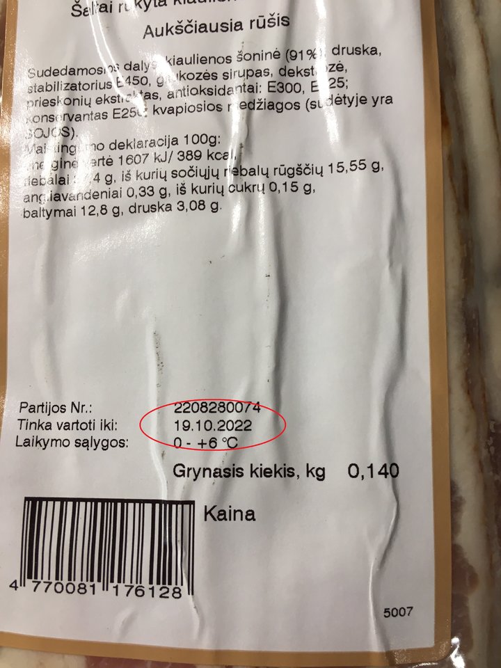 „Bet iš karto pastebėjau, kad su ja kažkas ne taip – vakuuminės pakuotės viduje esanti mėsa atrodė kažkokia nenatūraliai pabalusi, su kažkokiomis apnašomis. Ir ką sau manote? Jos galiojimas buvo pasibaigęs net spalio 19 d. Tai beveik dvi savaites ta mėsa gulėjo lentynoje.