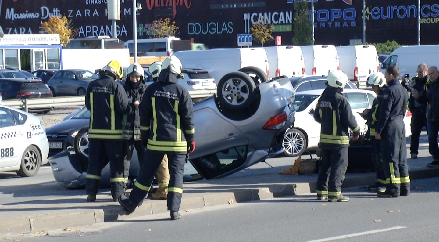 Prie Vilniaus „Akropolio“ po vidurdienio apvirto mašina „Toyota“. Specialiosioms tarnyboms paskambinę žmonės sakė, kad per avariją galėjo nukentėti trys žmonės, jie pranešė matantys, kaip žmonės bando išsiropšti iš apvirtusio automobilio.