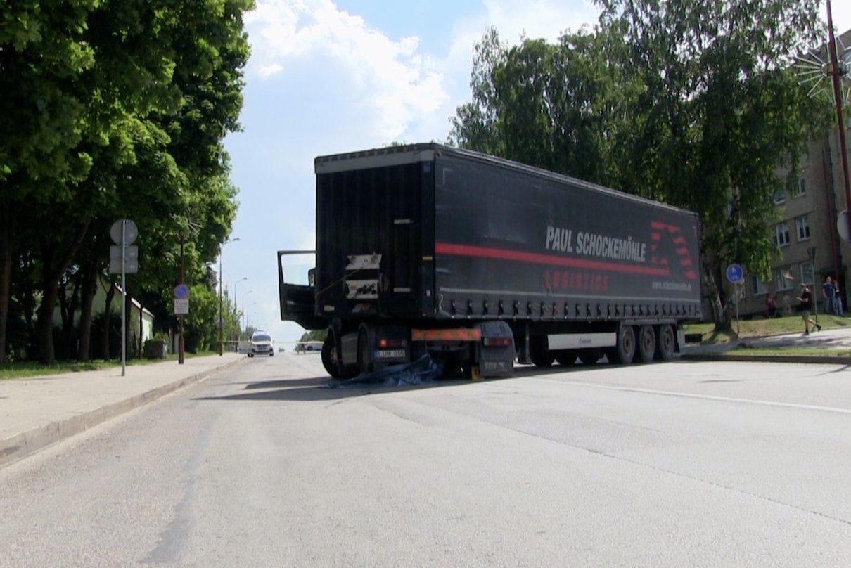 „Žmonės matė, kad stovėjo ši priekaba maždaug ties antra laiptine. Pradėjo važiuot atbuliniu. Ne tiesiai palei kraštą, bet viduriu gatvės. Gal jis užsukimą darė.“