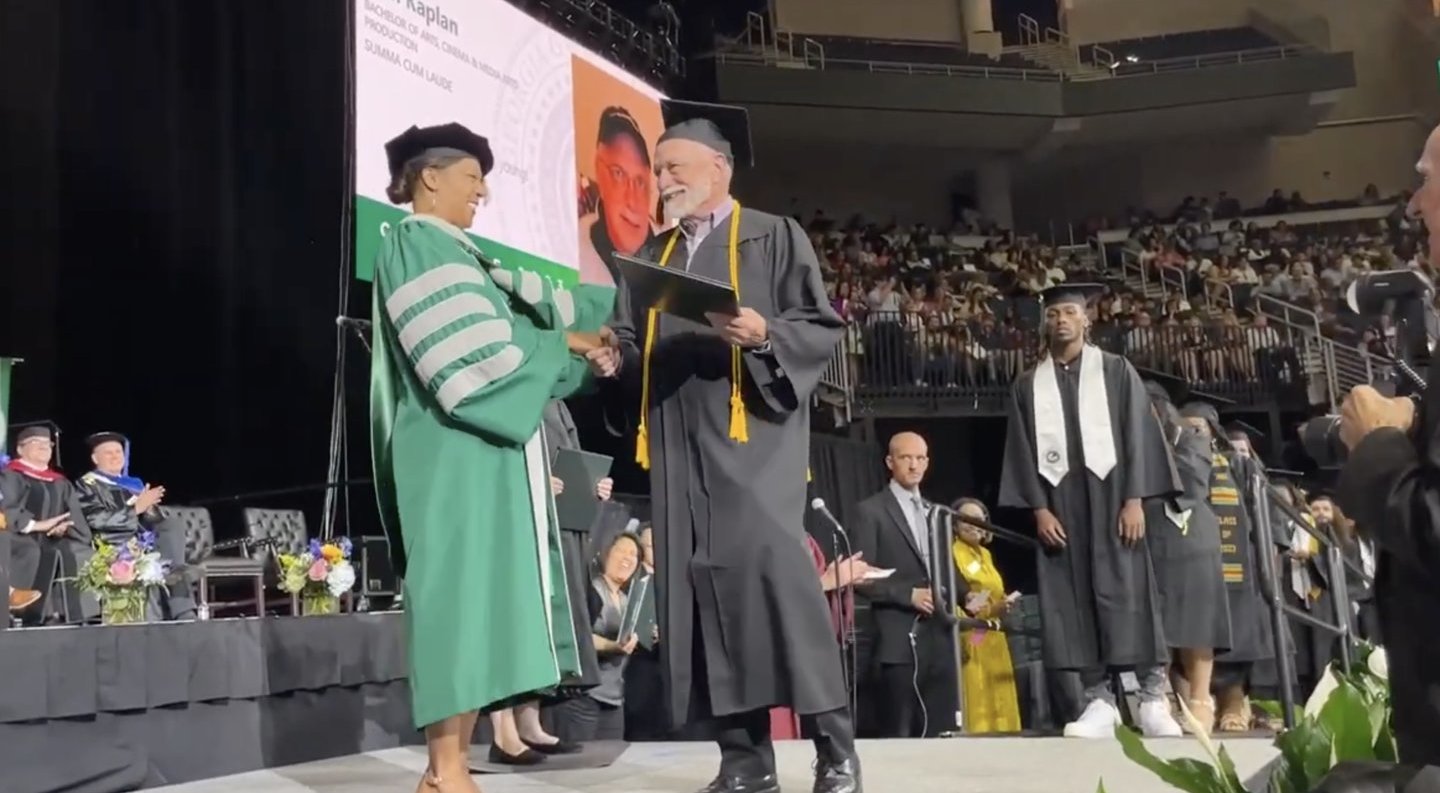 Atsiimdamas diplomą Kino ir medijų meno srityje senjoras sulaukė gausių publikos ovacijų.