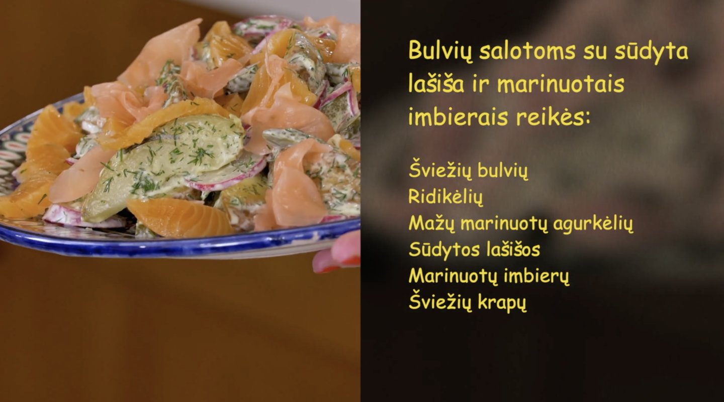 Bulvių salotoms su sūdyta lašiša ir marinuotais imbierais reikės: