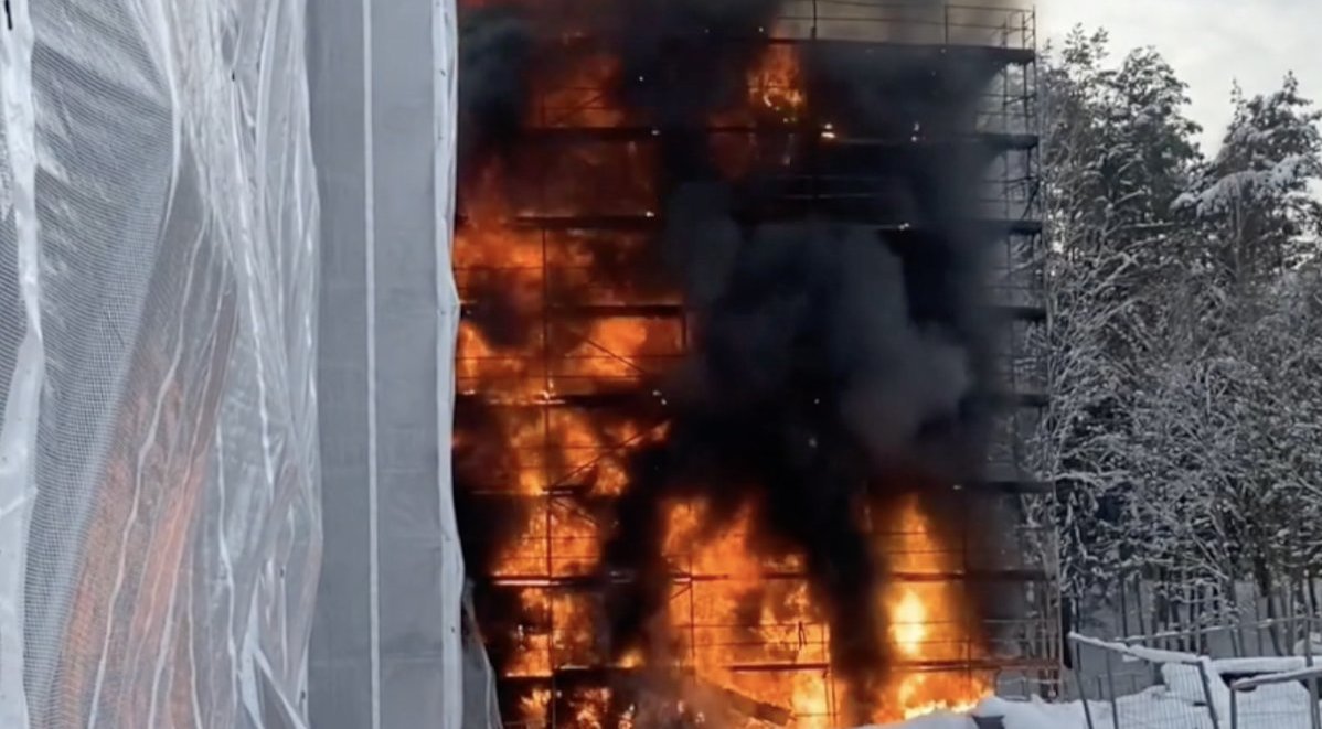 Ugnis pasiglemžė ir pastolių uždangalus, veikiausiai dega ir sienos šiltinamoji medžiaga. Labai pasisekė, kad ant užsidegusių pastolių neliko žmonių: jei kas būtų patekęs į šiuos ugnies spąstus, veikiausiai būtų žuvęs.